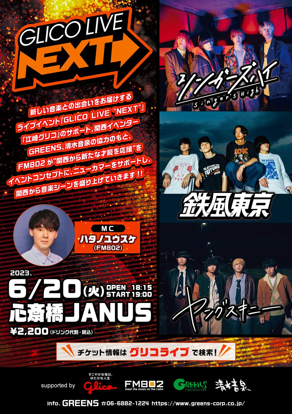 シンガーズハイ/鉄風東京/ヤングスキニーの3組が出演!FM802『GLICO LIVE “NEXT”』今年の第1回は6月20日開催決定!