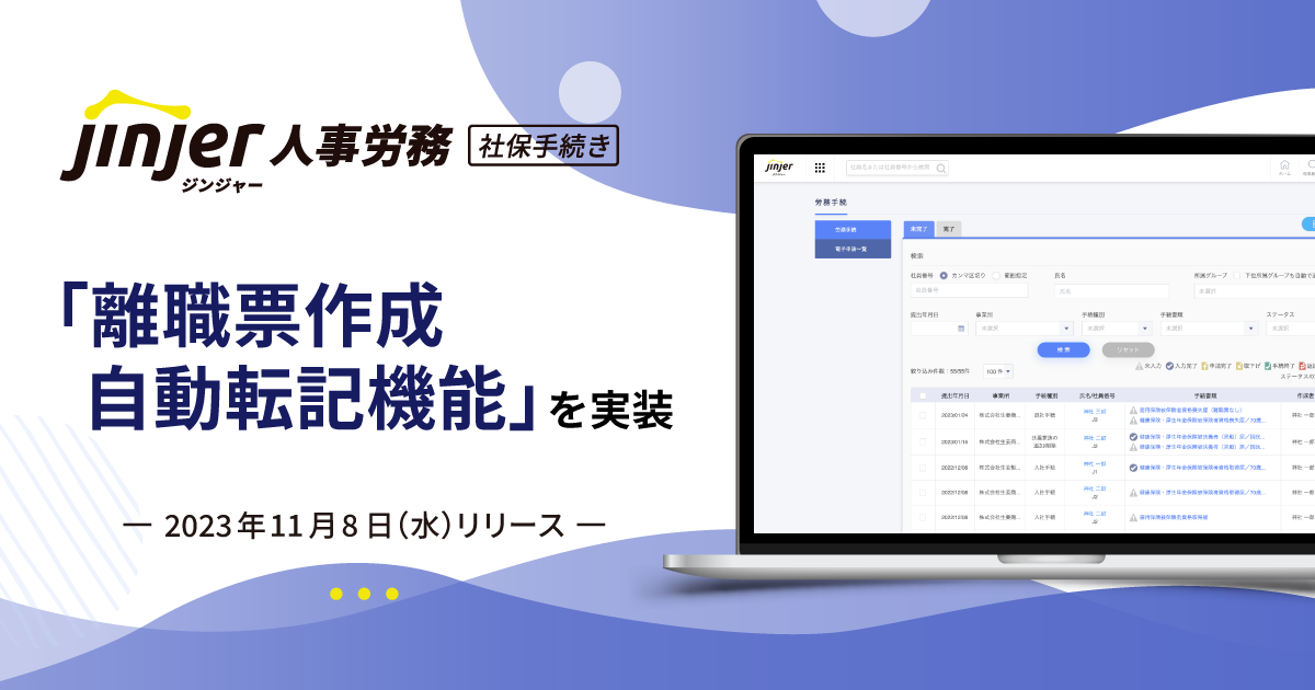 【ジンジャー人事労務へ新機能実装】離職年月日を基に「賃金額」や「賃金支払基礎日数」等を自動転記し離職票の作成を簡略化できる離職票作成転記機能を実装