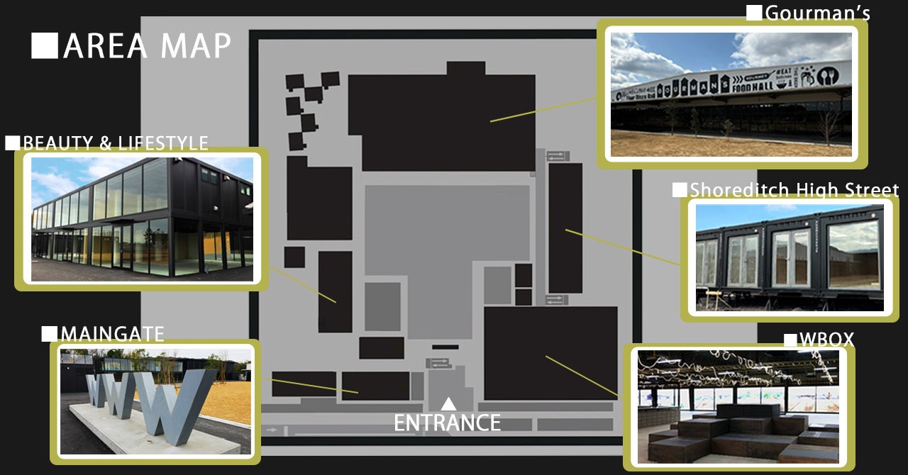 大型物販エリア「WBOX」やショッピングエリア「Shoreditch High Street(ショーディッチハイストリート)」、大空間のフードホール「Gourman's(グルマンズ)」、イベントスペース「Floor Disco Ball(フロアディスコボール)」など5月のグランドオープンに向けて、各エリアが着々と完成に近づいています。