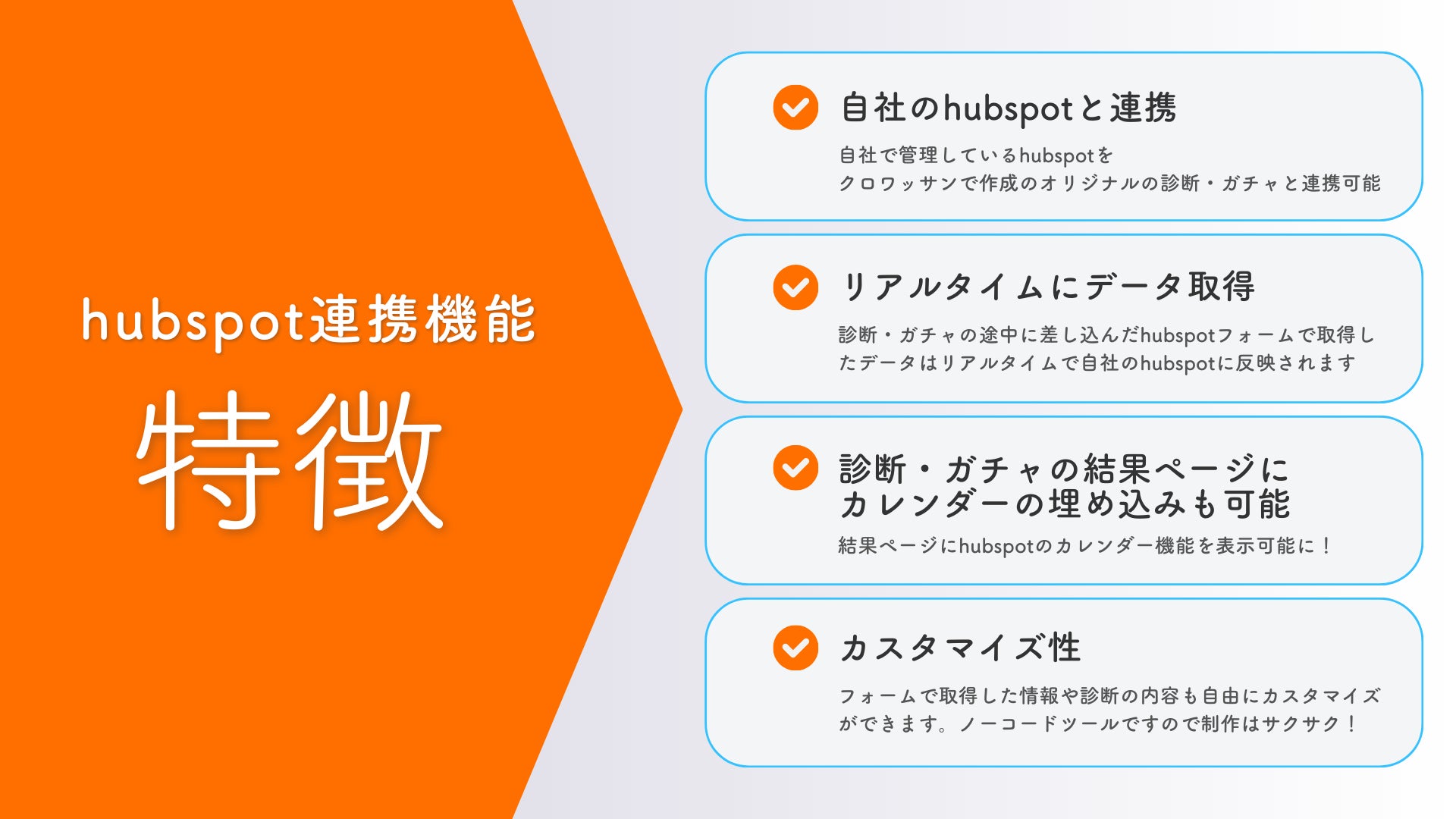 自社で管理しているHubSpotを「クロワッサン」で作成したオリジナルの診断・ガチャと連携することができます。