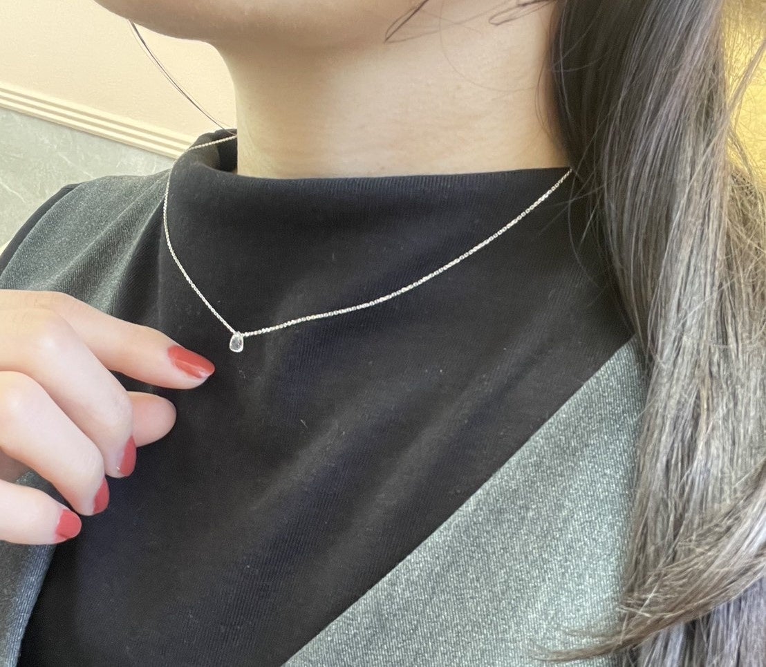 2.華奢で上品:首元に自然に沿う、しずく型のシルエット。