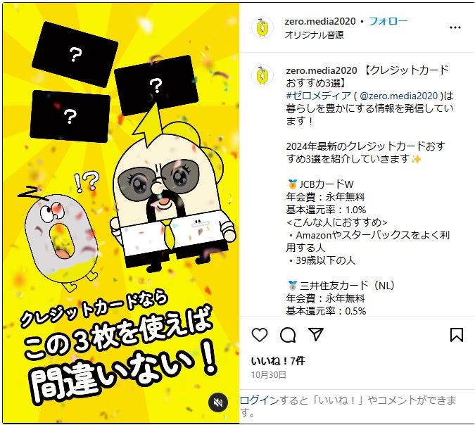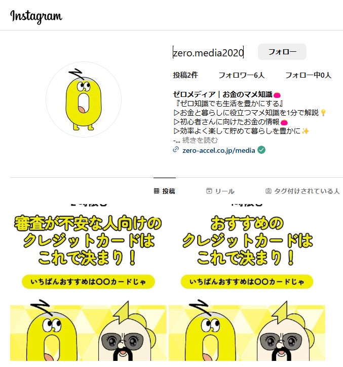 ゼロメディアではクレジットカードに関する情報をより深く簡単に知ってもらうことを目的に、Instagramでオリジナルリール動画を作成。公式アカウント「zero.media2020」にて公開中です。