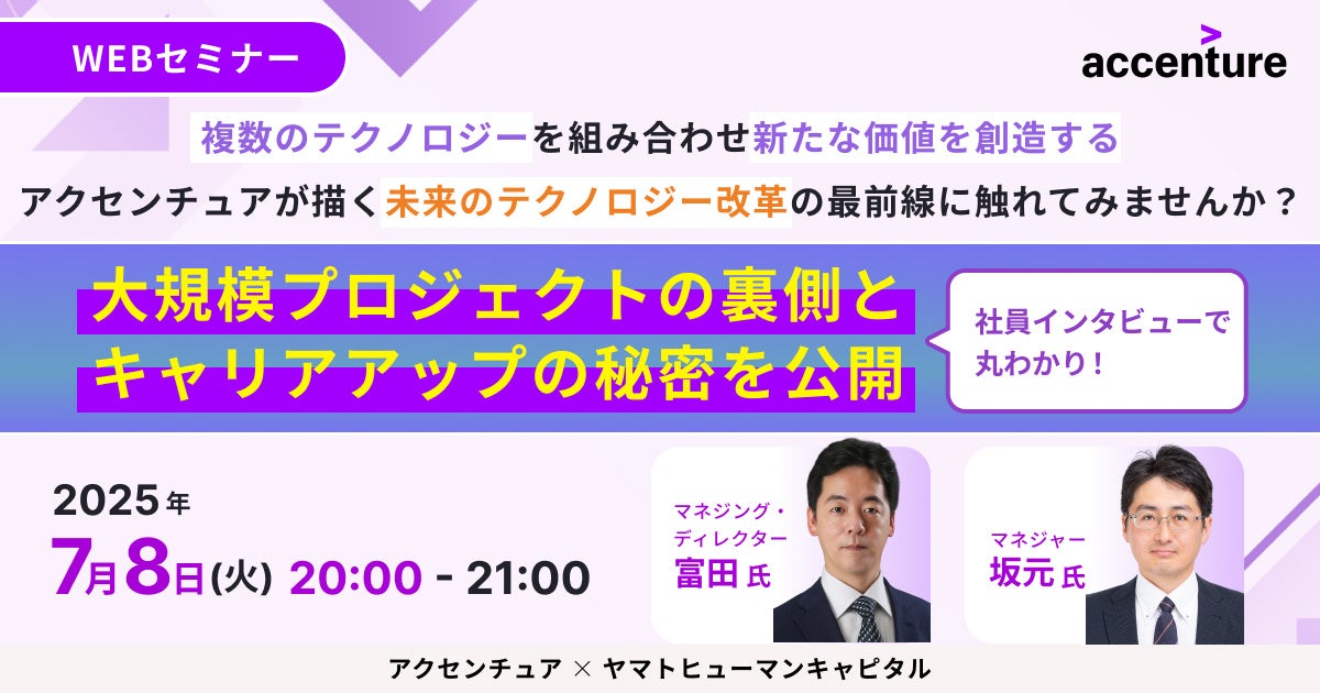 【7/8開催】社員インタビューで丸わかり!大規模プロジェクトの裏側とキャリアアップの秘密を公開!|アクセンチュア × ヤマトヒューマンキャピタル