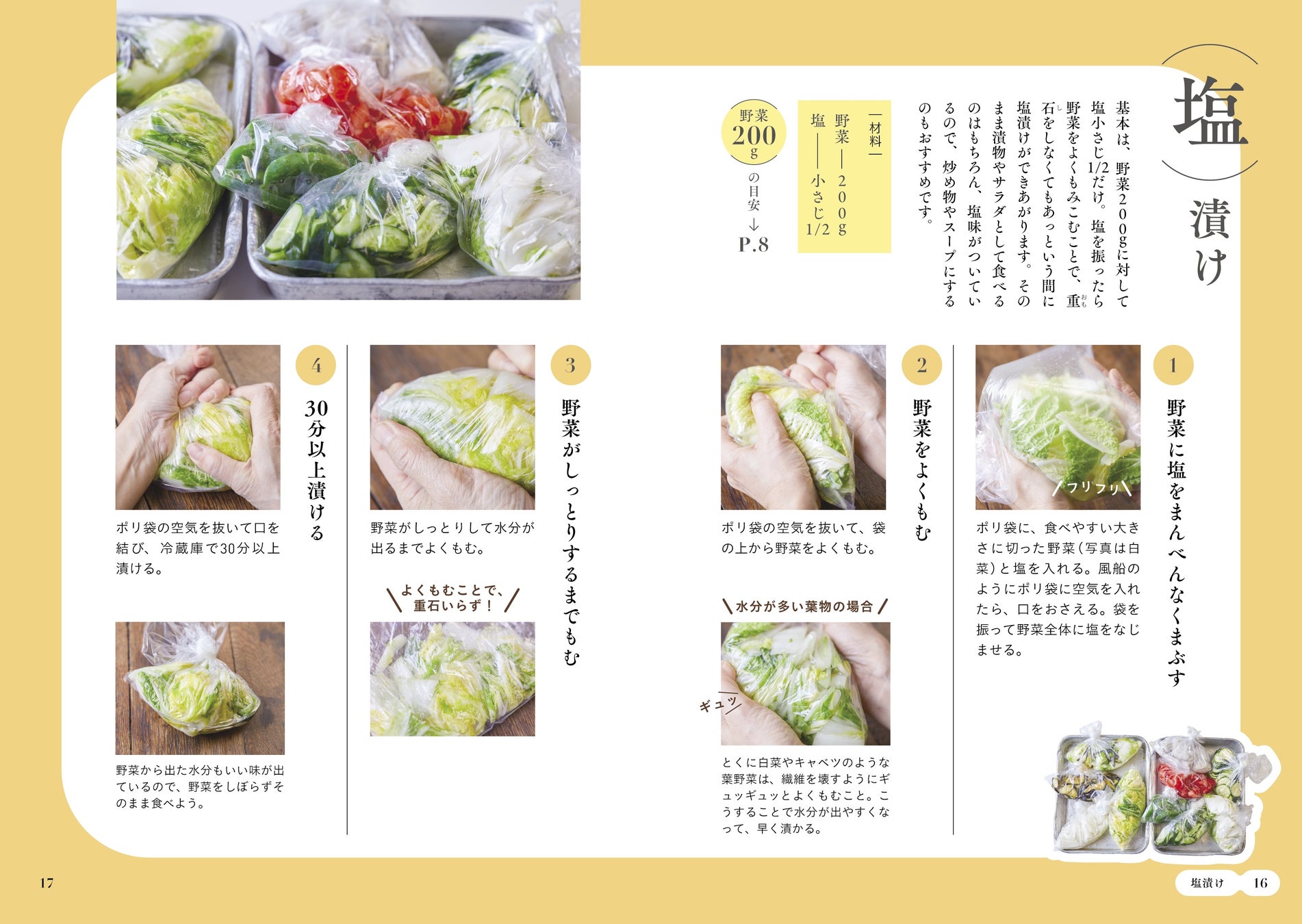 塩漬け、しょうゆ漬け、甘酢漬け、みそ漬け、さらにオイル漬けのレシピを紹介。同じ野菜でも様々な味が楽しめます。慣れてきたら、本書に載っていない野菜でもぜひ試してみてください。
