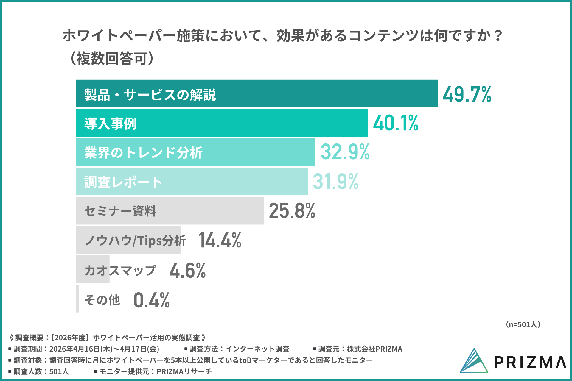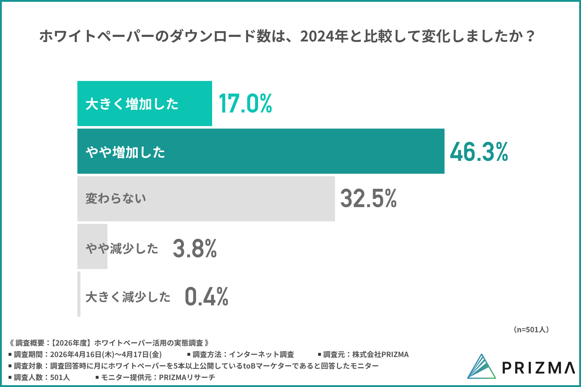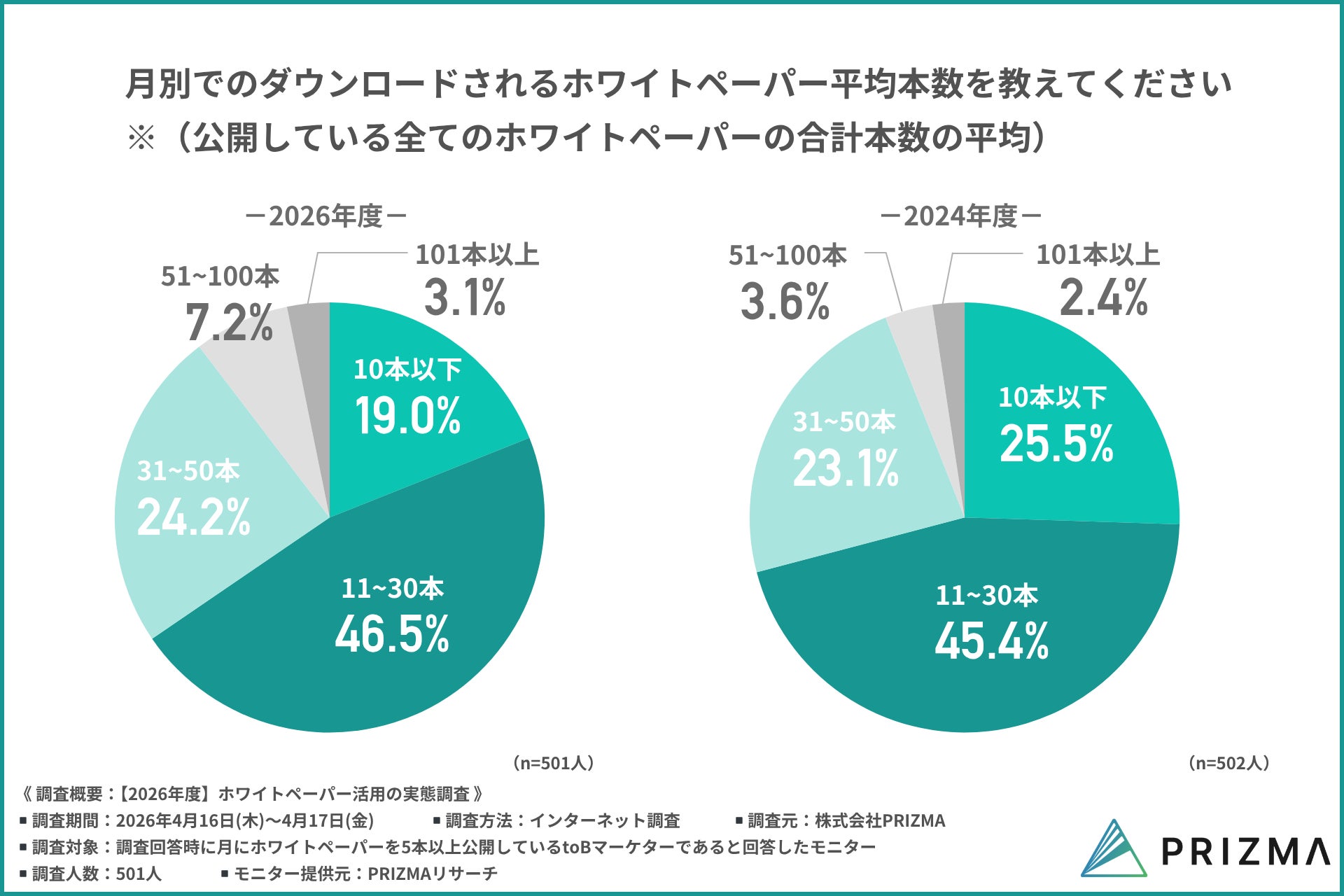 今回PRIZMA(https://www.prizma-link.com/data-force)は、2024年に実施した調査に続き、2026年版としてホワイトペーパー活用の実態について再調査を行いました。