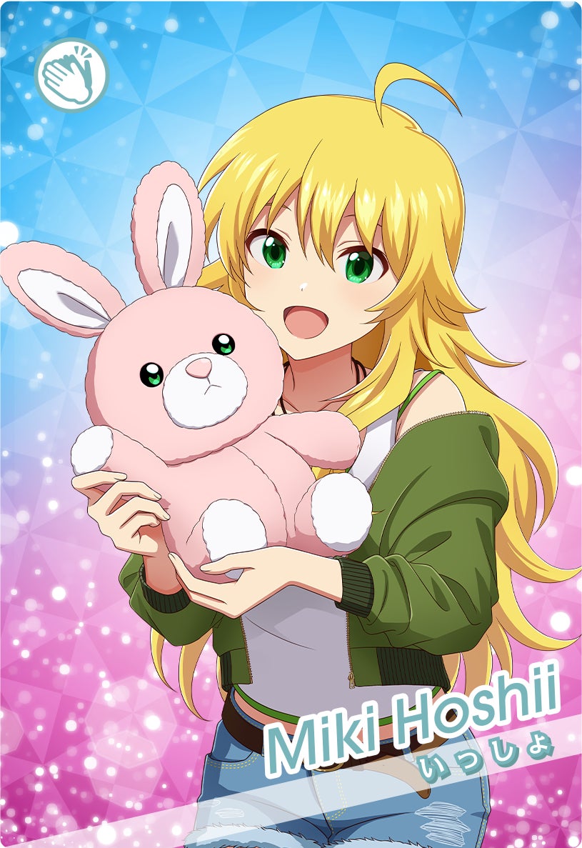 「水瀬伊織」・「硲道夫」の2名が新たに登場し、楽曲『M@STER PIECE』・『Beyond The Dream』を追加します。第3弾では、「水瀬伊織/rabbit on the moon」や「硲道夫/LESSON 1」をはじめとする、『アイドルマスター TOURS』ならではの描き下ろしカードが90種登場します。