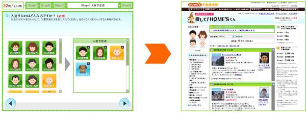 本サービスでは、店頭でしか伝えることのできなかったこれらの情報を、ネット上で簡単に登録できる仕組みを提供することで、ひとりひとりの希望に配慮したきめ細かい提案を、ネットで複数の会社から一度に受けられるようにしました。情報を詳しく登録すればするほど、希望に合った提案が不動産会社から届きやすくなります。
