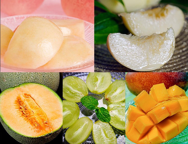 豊洲市場ドットコム自慢の人気フルーツをセットにした特別規格です。名産地、山梨「春日居の桃」と「岡山の白桃」、千葉の名人「向後さんの赤肉メロン」、山梨 JAふえふきのシャインマスカットに、沖縄 宮古島の塩マンゴーが入ります。