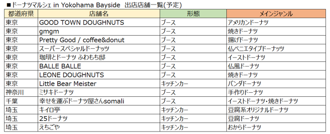 ドーナツマルシェ in Yokohama Bayside 出店店舗・商品一覧(予定)