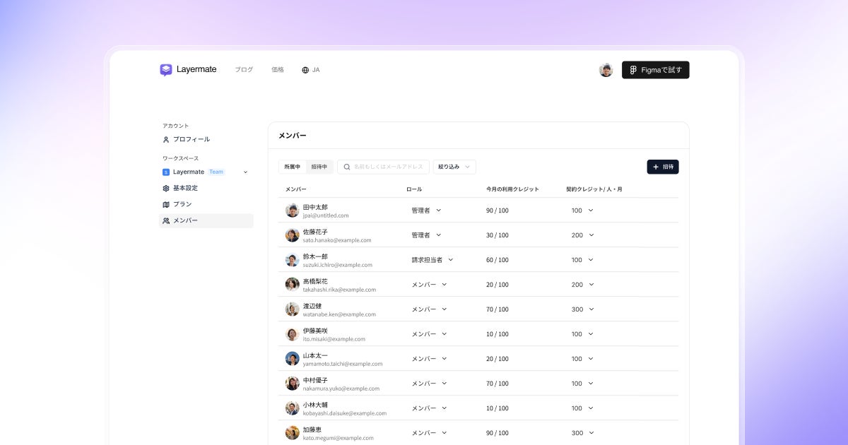Layermateチームプランの詳細はLayermateのウェブページよりご確認ください。