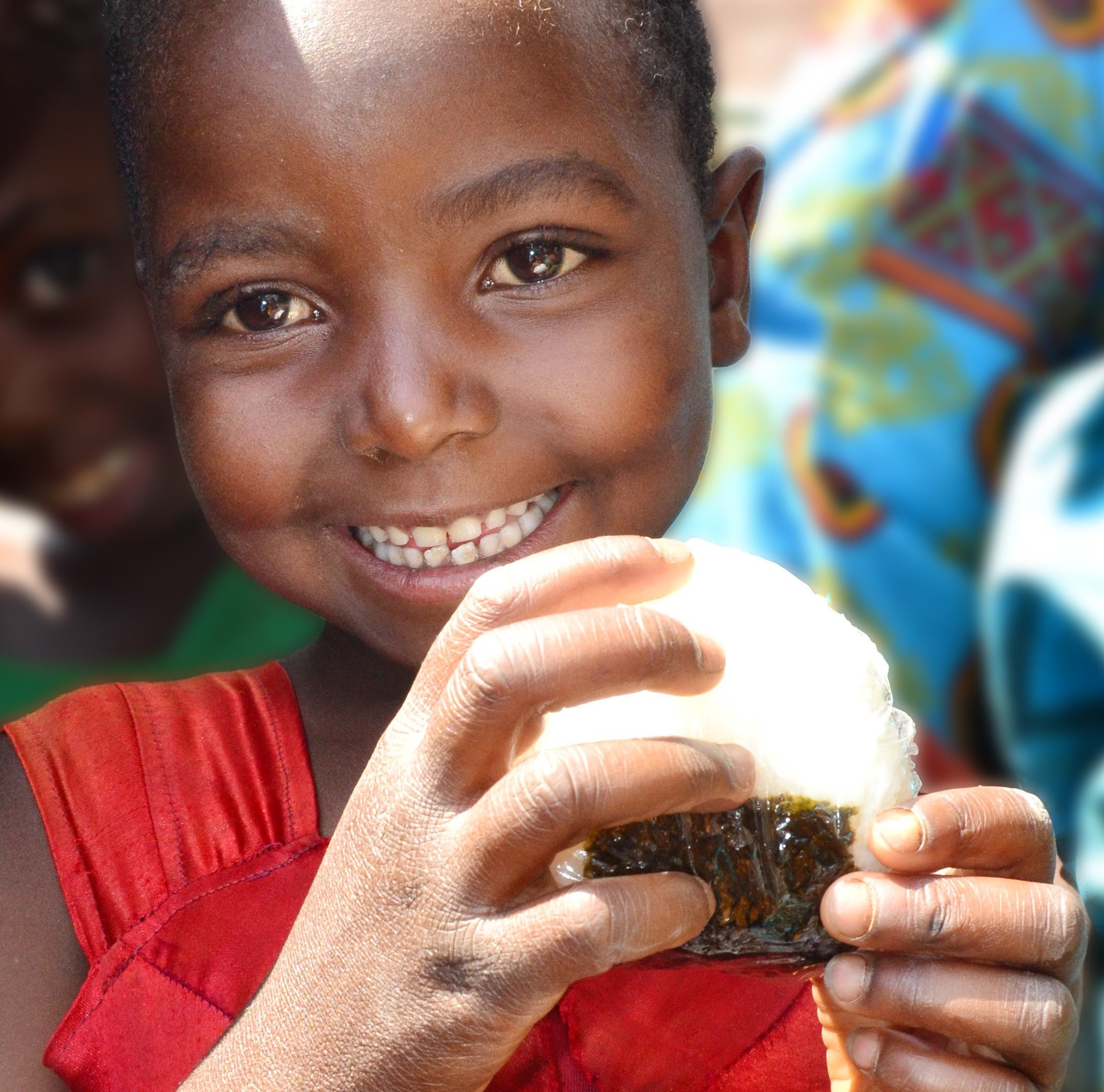 おにぎりアクションは、日本の代表的な食である「おにぎり」をシンボルに、「おにぎり」の写真をSNS(Facebook, Instagram, Twitter)、またはおにぎりアクションの特設サイトに投稿すると、1枚の写真投稿につき給食5食分に相当する寄付(100円)を協賛企業が提供し、アフリカ・アジアの子どもたちに給食をプレゼントできる取り組みです。