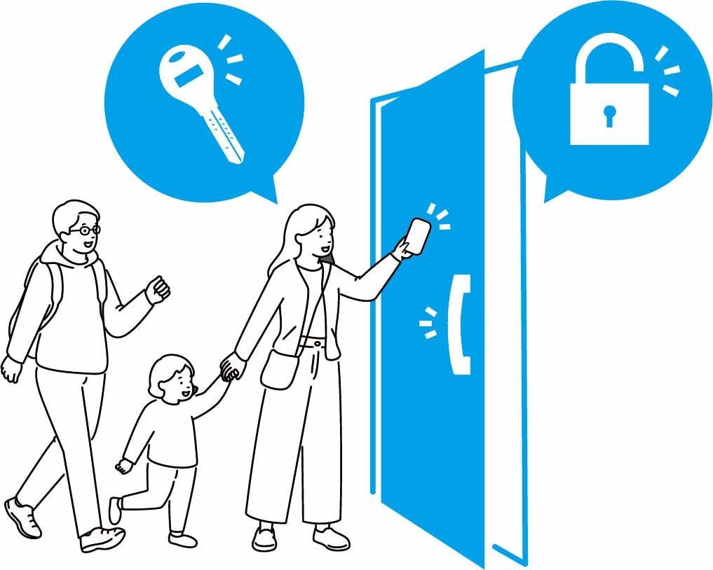 IoT機器を活用することで、無人の物件でも安心・安全に内見を行っていただくことができるシステムです。気兼ねのない内見で自由に住まい探しが可能です。WEB上で、ご希望の物件、ご希望の時間に「内見」の予約を入れます。予約した日時に直接現地を訪問、スマートフォンに表示される開錠ボタンをタップし、物件ドアのスマートロックを開錠するといった非対面で内見できます。新型コロナ感染症対策を背景に、非対面・非接触が求められる中では、物件への案内や内見が難しい状況も多くありました。「無人内見システム 」を活用することで、こだわり抜いて建てた新築戸建てを無人にし、土日・平日を問わずいつでも気軽に内見して頂くことが可能です。