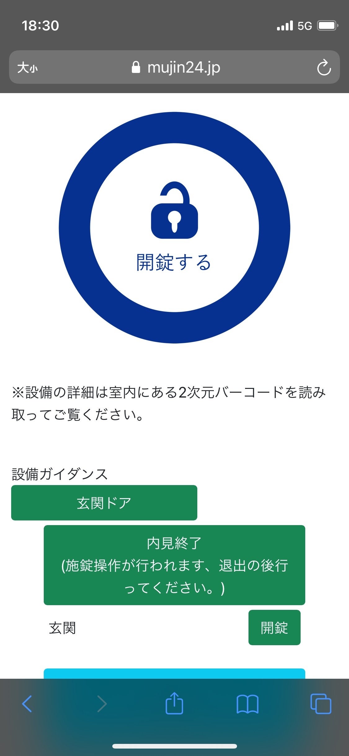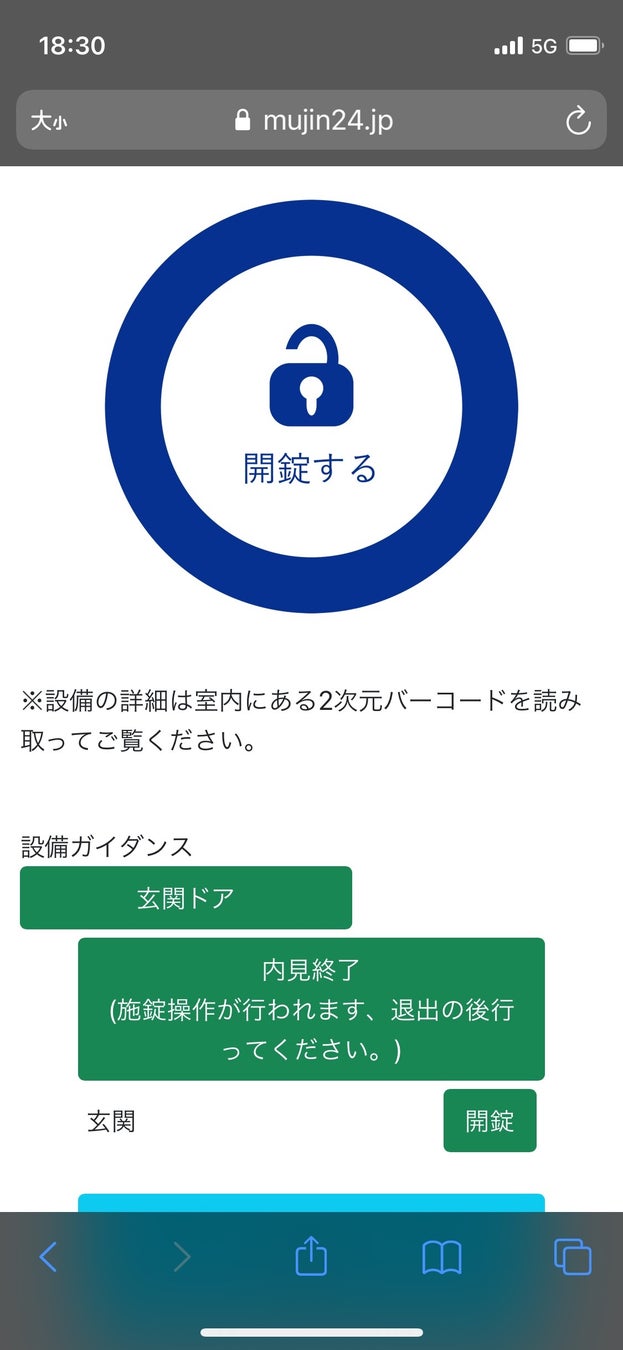②「開錠ボタン」をタップすると、現地スマートロックが聞錠。