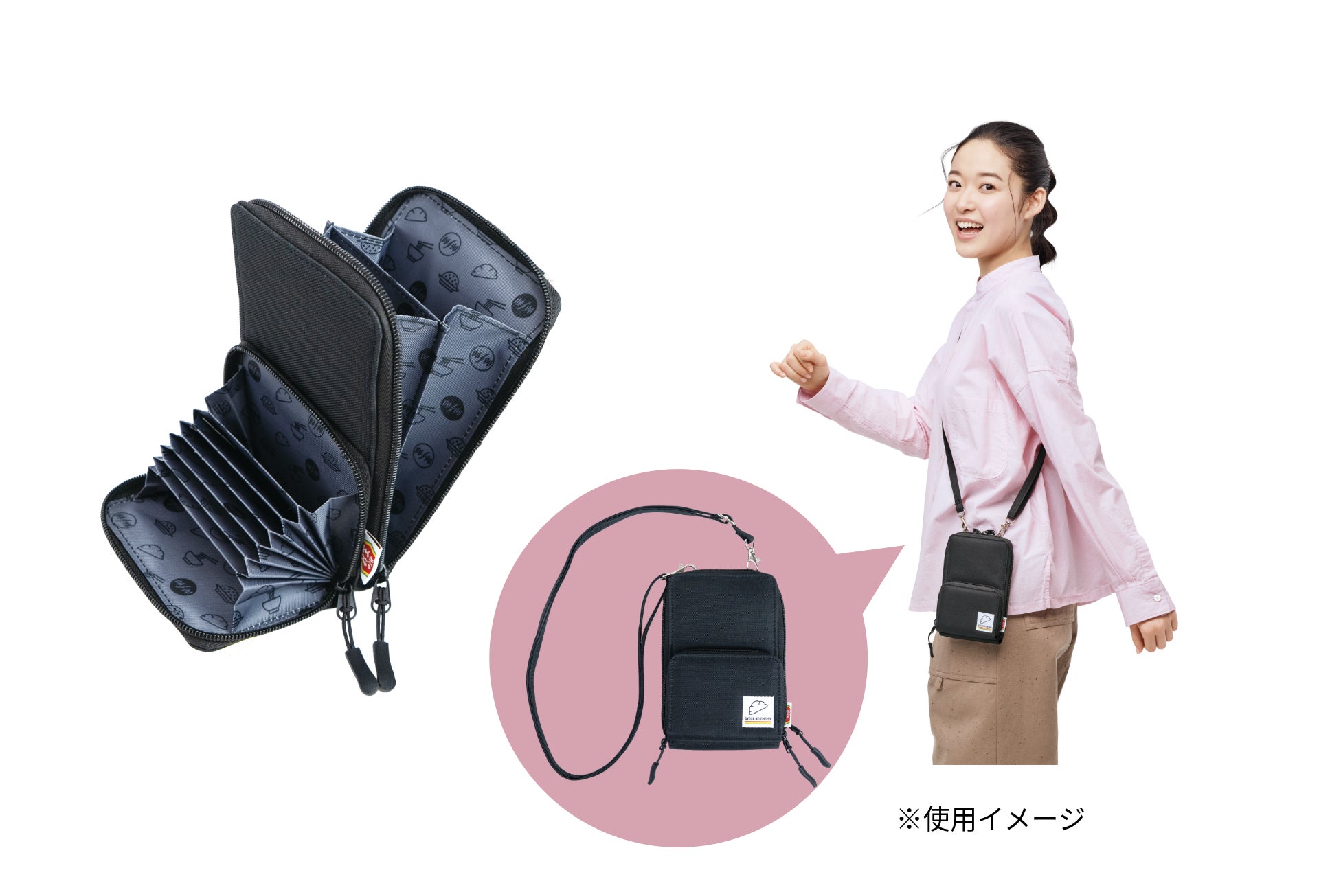 スマホショルダーやカード入れとしても使える、便利なマルチショルダーバッグです。ストラップをつけて身に着けるのはもちろん、紐を外せばインナーバッグとしても活躍します。内側には人気メニューのイラストをあしらっています。