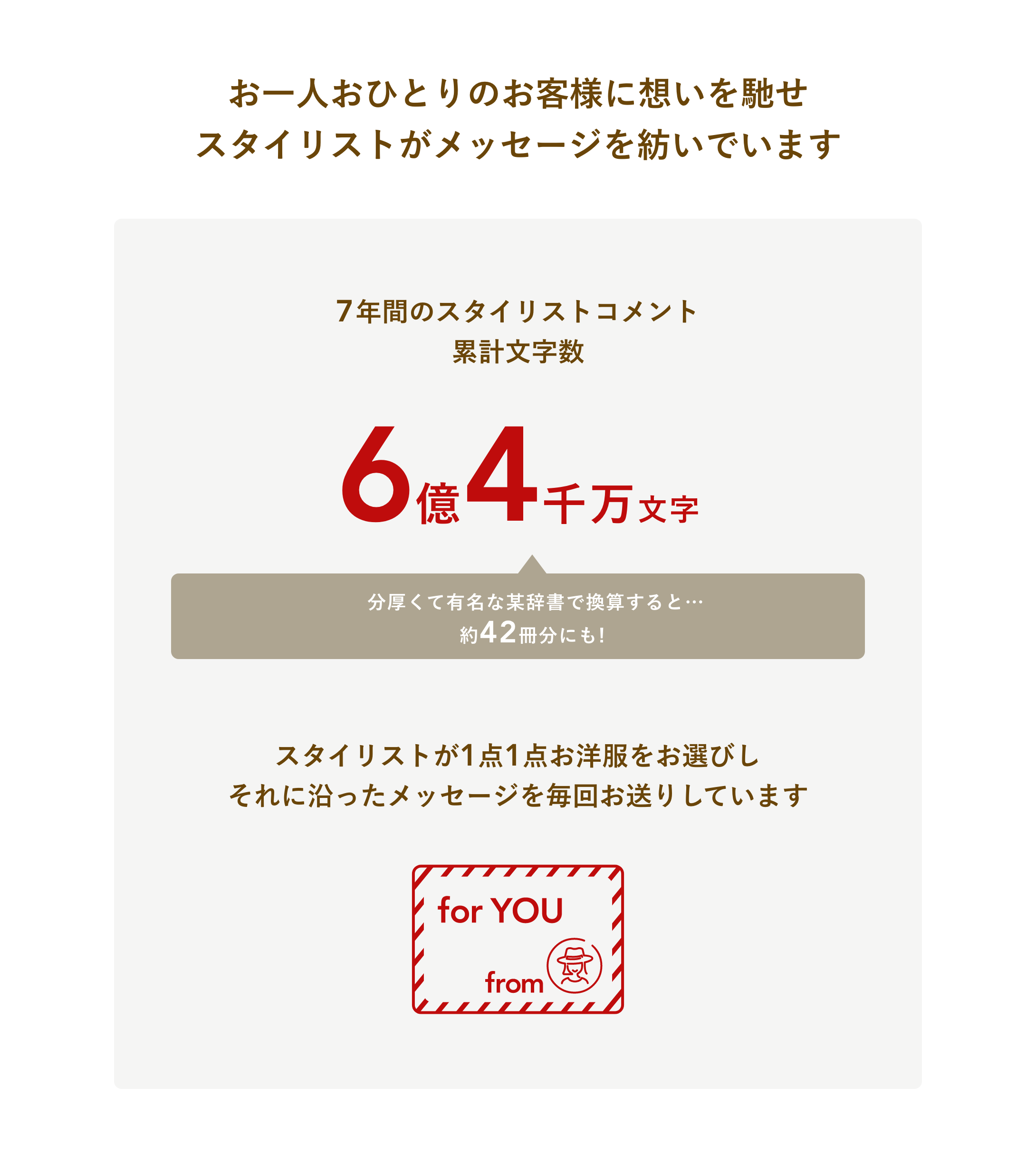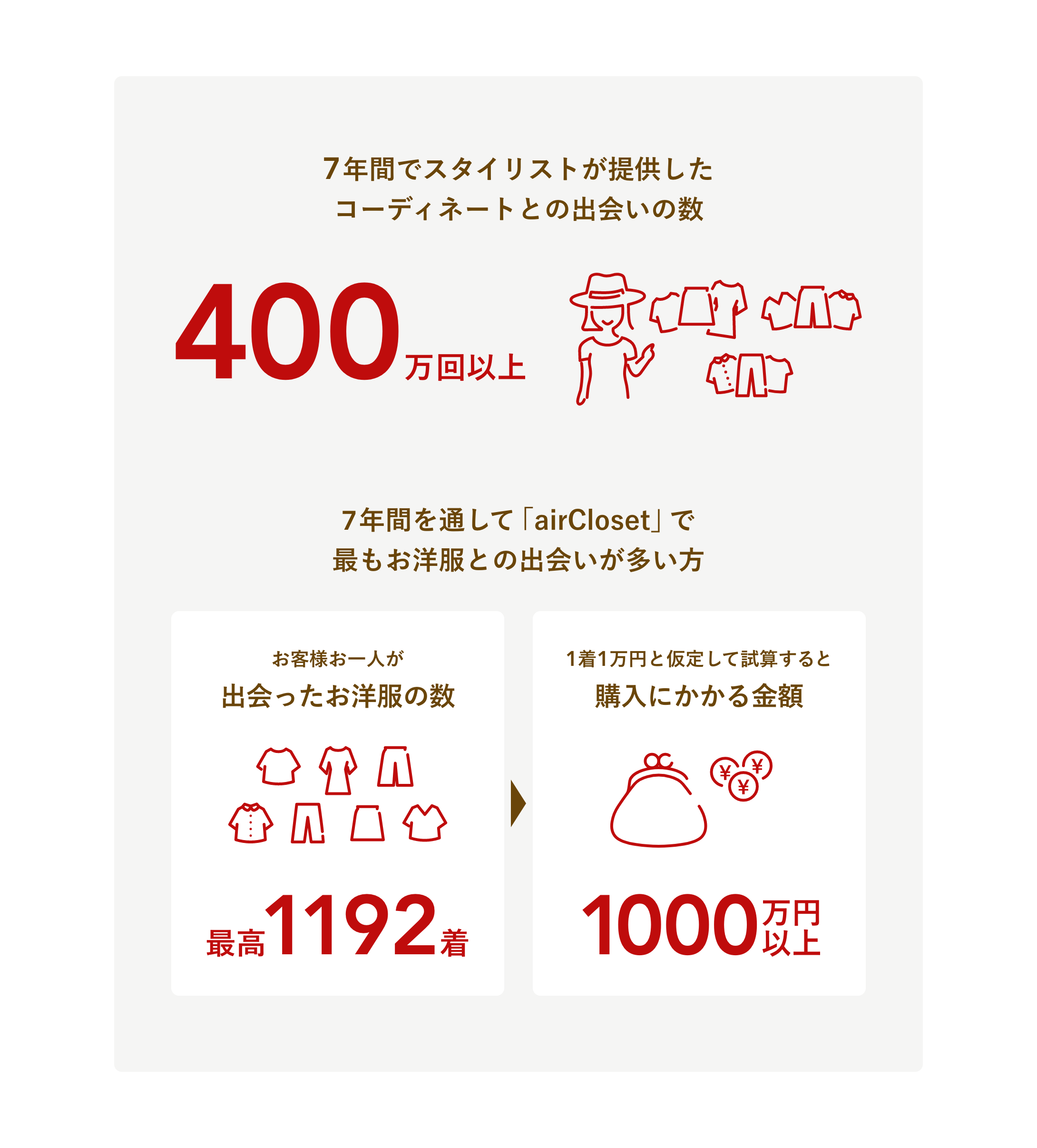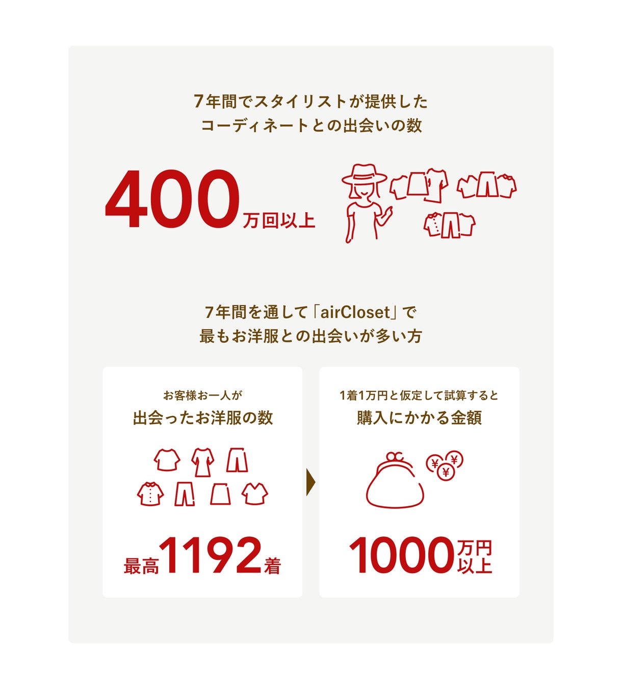 また、「400万回以上のお洋服との出会い」をお届けする裏側には、お洋服を提供してくださるブランド様や、お客様の好みやライフスタイルに合わせ、1着1着お洋服のコーディネートを選んでくださるスタイリストの皆様、お洋服を運んでくださる物流業者様、返却されたお洋服をメンテナンスしてくださる協力会社様がいらっしゃいます。こういった方々のサポートがあり7周年を迎えることができました。誠にありがとうございます。