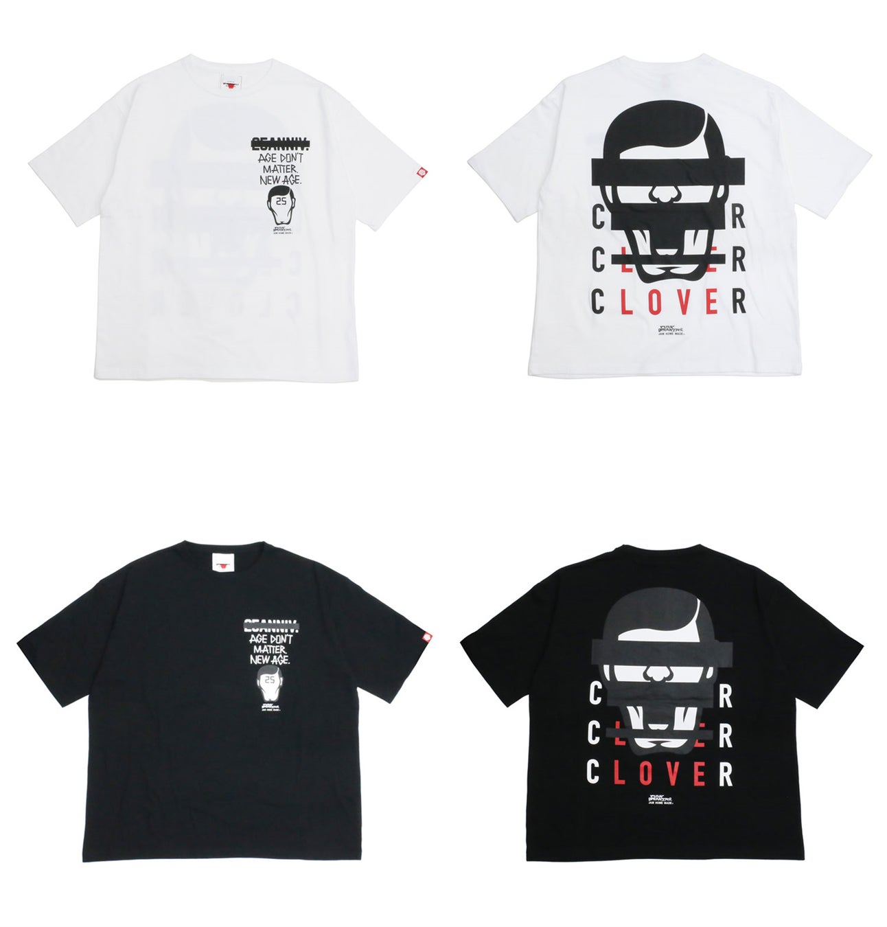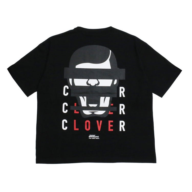 「そもそも『愛』は目には見えないモノ」という表現として、その「LOVE=愛(アイ)」を目隠し黒目線の ████(黒いバー=黒バー)で隠したビジュアルデザイン。今回のTシャツでは、目隠し黒目線で隠されているのは“あいつ”のEYE(アイ=愛)と、“あいつ”の背面にレイヤードされている「CLOVER」の真ん中に隠された「LOVE=愛」の2種類の“愛”が隠されています。