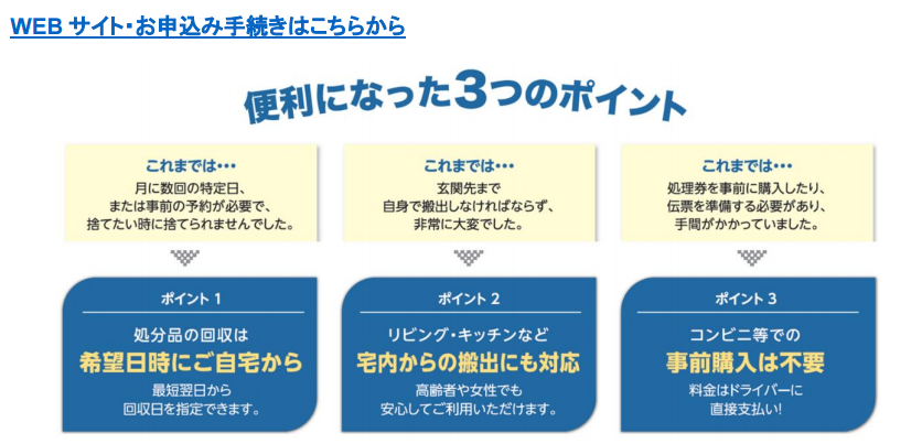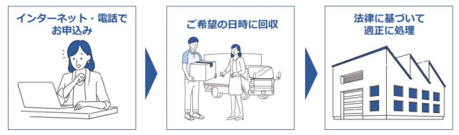・ インターネット・電話から申し込み後、収集運搬許可を保有する事業者が希望日時にご自宅へ回収に伺います。