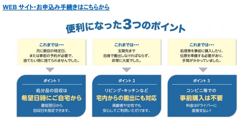 これまでに協定締結いただいた自治体からは、手軽な申し込み方法や、不用品搬出時の手間が無いことに対し住民から好評とのお声を頂いています。また、自治体の広報誌やホームページにも本サービスの概要や申し込み方法について掲載するなど住民に広くお知らせいただき、自治体問い合わせ業務の軽減にもつながっています。