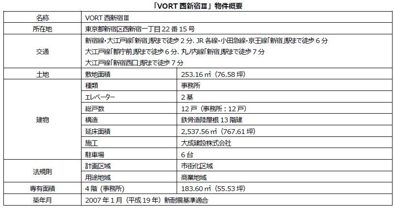 不動産小口化商品「Vシェア」「VORT西新宿Ⅲ4階・VORT神宮前Ⅱ-A地下1階」を1,210口で販売