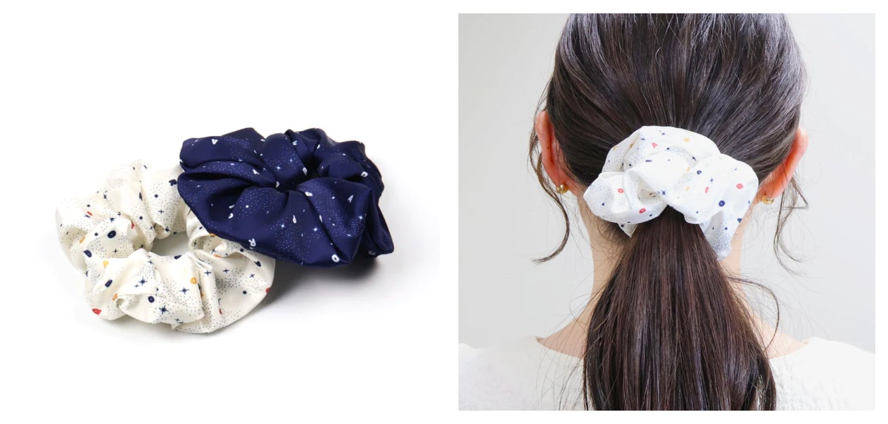 数学の図形に関する分野(トポロジー)でドーナツ状の図形をさす「トーラス」という言葉にちなんだシュシュ。ドーナツ状の図形と同相(同じ形)と見なせる、穴がひとつ空いた形のアルファベット(A, D, O, P, Q, R)がデザインされています。コーデによって使い分けやすい、ネイビーとアイボリーの2色展開。学校や作業中のヘアアレンジにお使いください。(商品詳細:https://quriostore.com/products/torus-chouchou)