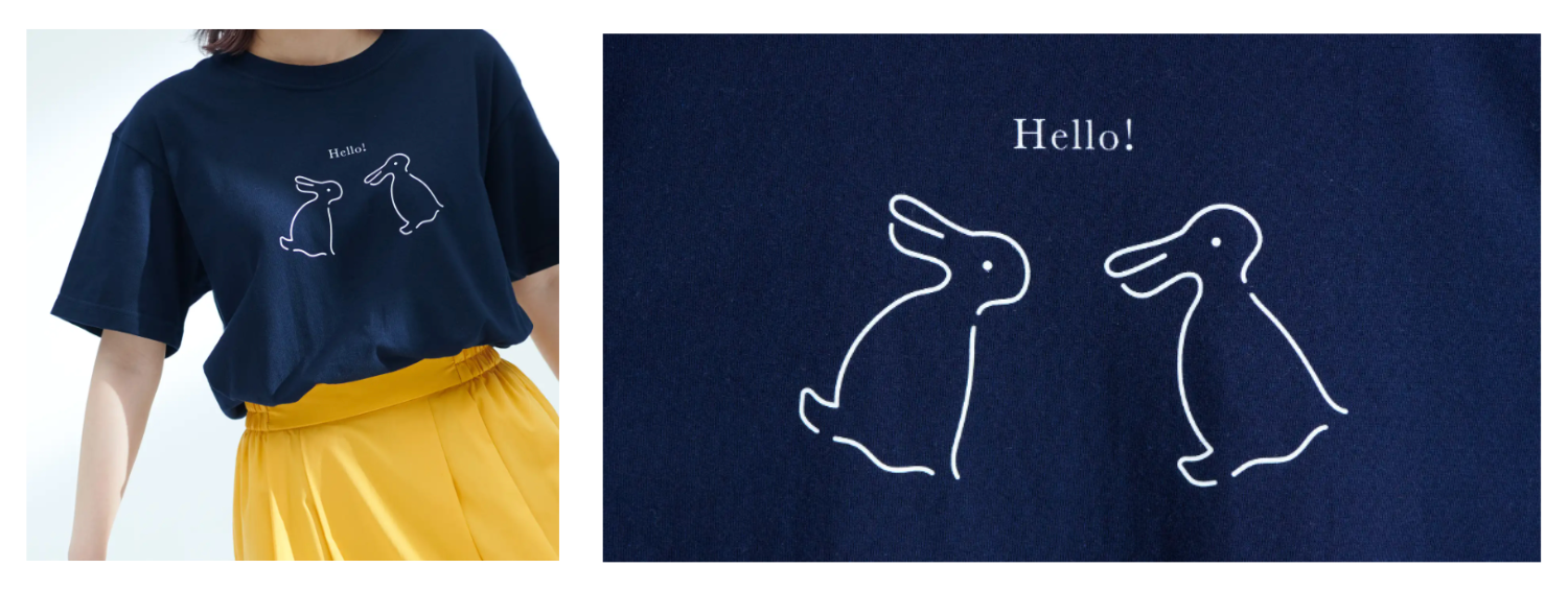見方によってはウサギにも、アヒルにも見える「多義図形」をモチーフにした、丈夫でなめらかな生地のビッグシルエットTシャツ。明るくソフトな3カラー展開で、シンプルにパンツと合わせたり、プリーツスカートにタックインしたりするのもオススメです。(商品詳細:https://quriostore.com/collections/newitem/products/same-shirt)