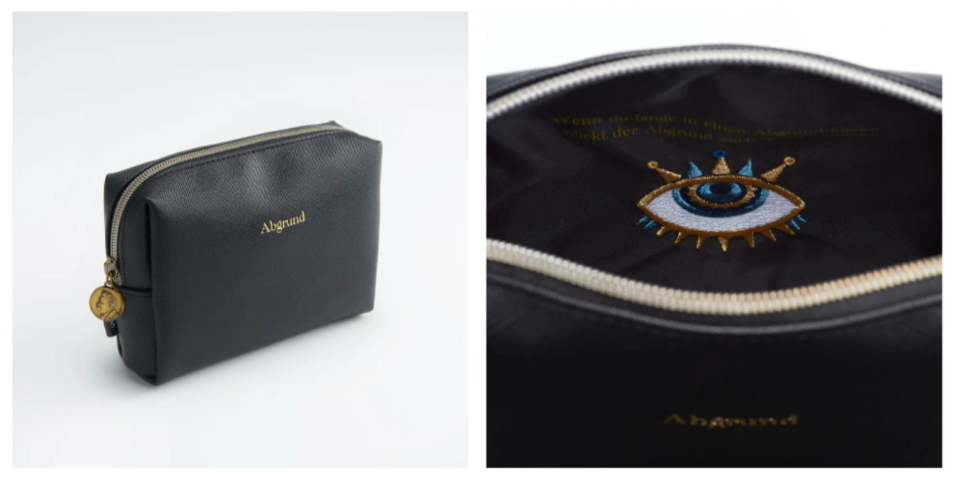 「長いあいだ深淵を覗き込んでいると、深淵もまたお前を覗きこむ」という哲学者・ニーチェの文章に着想を得たポーチ。コスメや充電器など、小物を入れて持ち運ぶのにぴったりなサイズです。覗き込むあまり、向こう側に引きずり込まれないようにお気をつけください。(商品詳細:https://quriostore.com/collections/newitem/products/abgrund)
