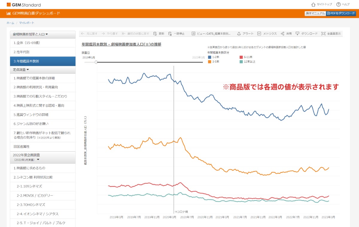 【2】週次提供の「劇場映画参加者人口」の分析軸に年間鑑賞本数別を追加