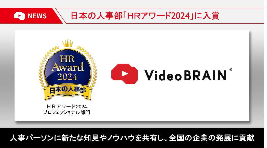 株式会社オープンエイト(本社:東京都千代田区、代表取締役社長兼CEO:髙松雄康、以下オープンエイト)が提供するAIビジネス動画編集クラウド「Video BRAIN(ビデオブレイン)」は、日本の人事部「HRアワード2024」(主催:「HRアワード」運営委員会、後援:厚生労働省)のプロフェッショナル部門に入賞したことをお知らせします。