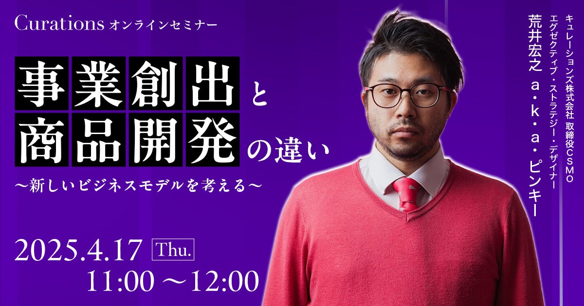 顧客企業のビジネス変革を成功に導くキュレーションズ株式会社(本社:東京都渋谷区、代表取締役社長:根本隆之、以下当社)は、『事業創出と商品開発の違い〜新しいビジネスモデルを考える~』を2025年4月17日(木)に開催いたします