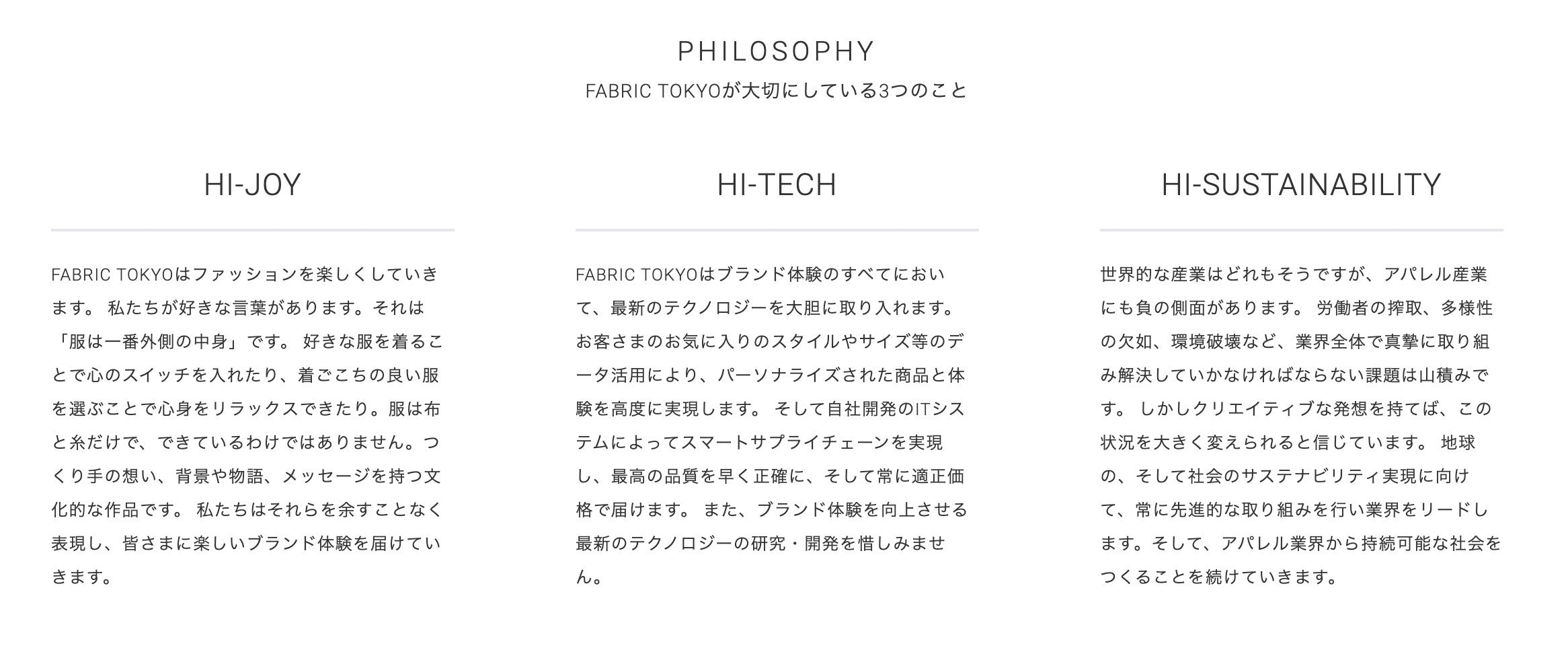 ※ PHILOSOPHY FABRIC TOKYOが大切にしている3つのこと