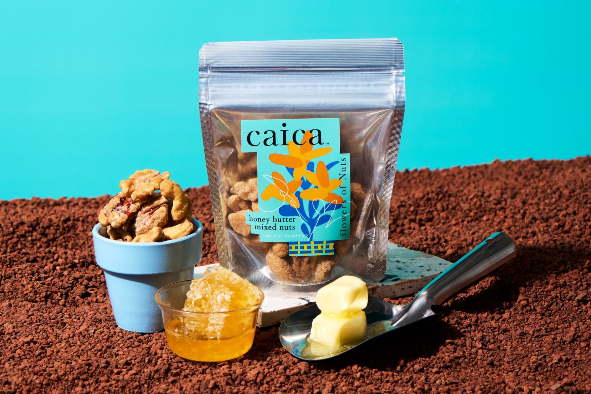 女性を中心に人気のナッツ菓子専門店「caica」に、新ラインナップとして “そのままナッツシリーズ” が登場いたします。第1弾は、濃厚フレーバー2種で展開。5種のナッツを贅沢にミックスした「ハニーバターミックスナッツ」は、はちみつ風味の甘さをベースに塩味がアクセントに効いた、濃厚なテイストです。焦がしキャラメルパウダーでアーモンドをコーティングした「焦がしキャラメルアーモンド」は、袋を開けた瞬間パッと目が覚めるような香ばしく甘い香りがダイレクトに広がります。