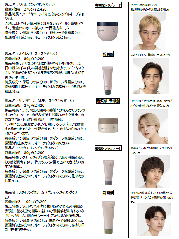 2020年代に入ると、波まきスパイラルやスパイキーショートなど、定番スタイルに新しさをプラスした多様なスタイルの時代が到来。それに合わせ、第2 弾では第1 弾から共通したブランド特長であるうるおい・香り・ヘアスタイルの「3つの持続力」に加え、『新しい質感でより使いやすいスタイリングアイテム』を取り揃えました。