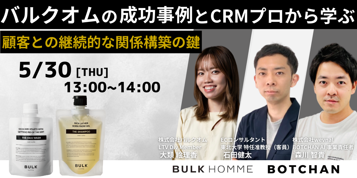 【無料オンラインセミナー】バルクオム社の成功事例とCRMプロから学ぶ!顧客との継続的な関係構築の鍵