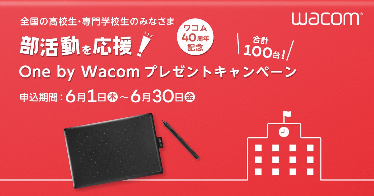 板タブ100台進呈「〈ワコム40周年記念〉部活動を応援!One by Wacomプレゼントキャンペーン」を6/1より開始