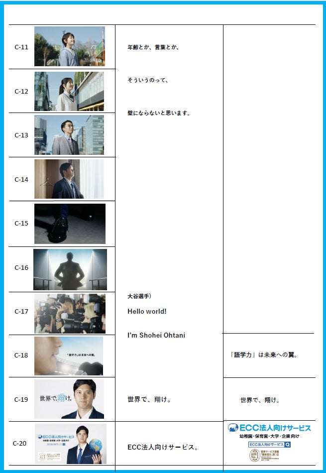 本CMでは、大谷選手が自らの経験をもとに「未来を自分自身でつくることの大切さ」を語りかけながら、「『語学力』は未来への翼」というメッセージを力強く届けます。ECCの法人向けサービスを通じて、一人ひとりが可能性を切り拓くための“準備”を後押ししたいという想いが込められています。