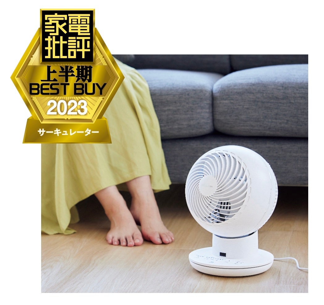 全体的にバランスのとれた製品で、多くのテスト項目で高評価を獲得。特に目立ったのが風のパワーとムラの少なさ。コンパクトなボディながら、最大風速は全製品中トップクラスの数値で、パワフルな風を生み出します。また風が直線的に遠くまで届くので、部屋の空気を循環させるという、サーキュレーターに求められる最も重要な役割をしっかり果たしてくれます。直線的でパワフルな風により、速乾性の検証では全体で3位という高評価。梅雨の時期、洗濯した衣類の部屋干しにサーキュレーターを利用したいと考えている人にはかなりおすすめです。また、2kgクラスの製品が多い中、本製品は1.3kgと軽量で、小さなボディは持ち運びにも優れており、移動もストレスなく行えるのも魅力。操作パネルやリモコンもシンプルでわかりやすく、広範囲に首が動くので、使い勝手の評価も優秀でした。
