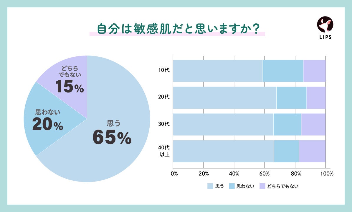 「自分が敏感肌だと思う」と感じるユーザーは全体の65%にも及びました。