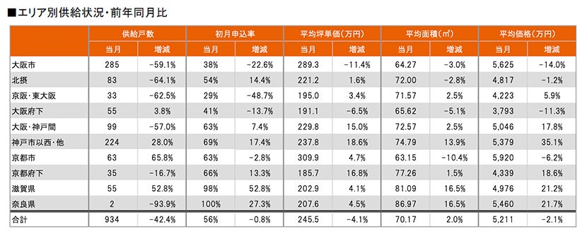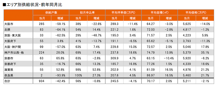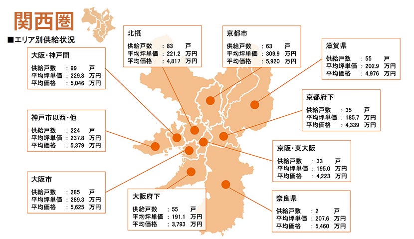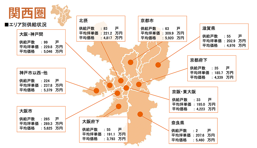 集計対象エリアは首都圏及び関西圏となっており、それぞれのエリア別相場情報、需給動向、