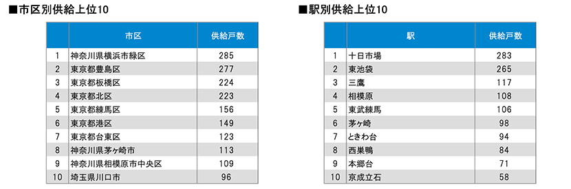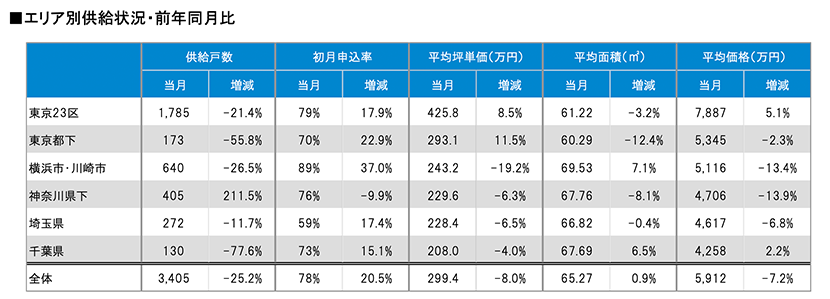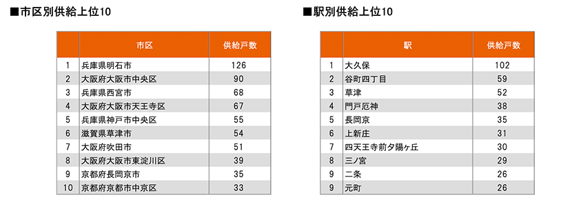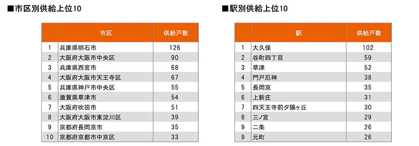 着工件数等を集計しました。また、前年同月における比較や市区別、駅別の供給ランキング等も算出しました。