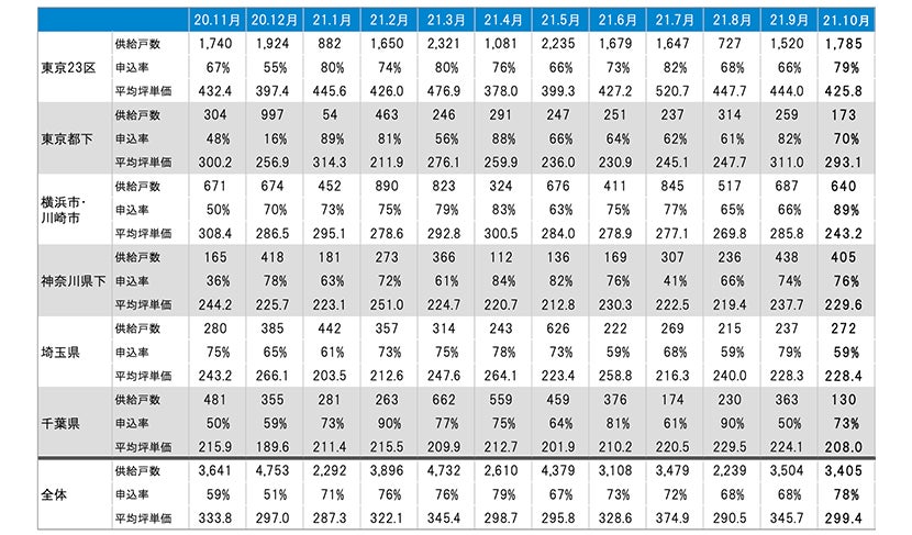 不動産ビッグデータとAI等のテクノロジーを活用し、不動産情報プラットフォームを提供する株式会社マーキュリーリアルテックイノベーター(本社:東京都新宿区 代表取締役:陣 隆浩)は、独自調査による新築分譲マンションの動向を発表致します。今月は、2021年10月度分譲実績データです。