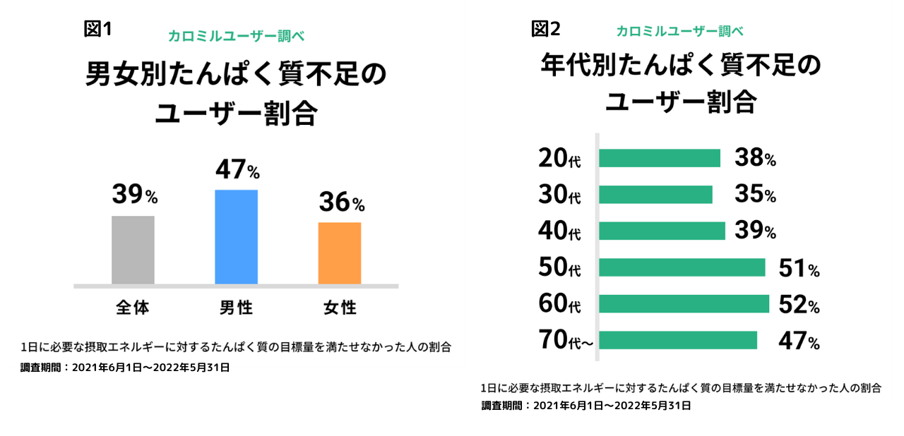 ①健康志向の高いカロミルユーザーも約4割がたんぱく質不足 |