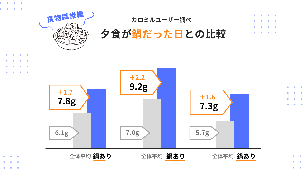 【カロミル栄養調査レポート】鍋を食べるとたんぱく質1割、食物繊維2割摂取量が増加