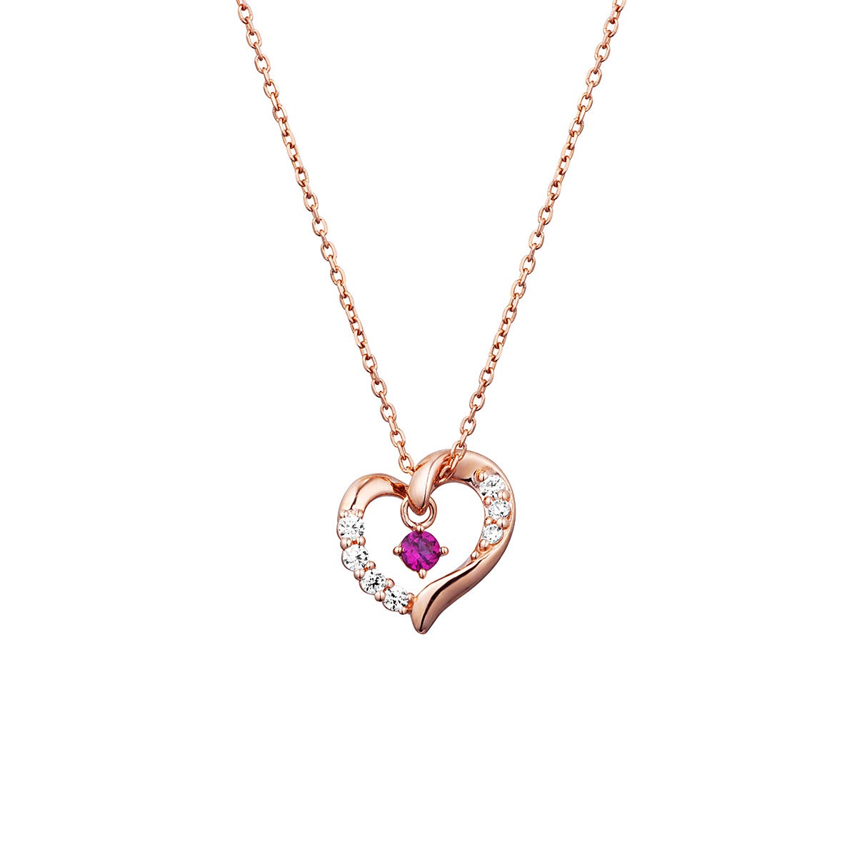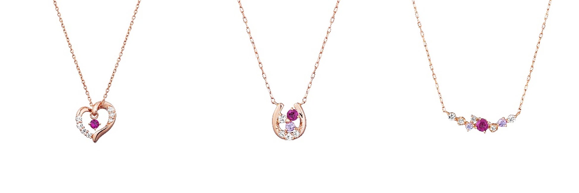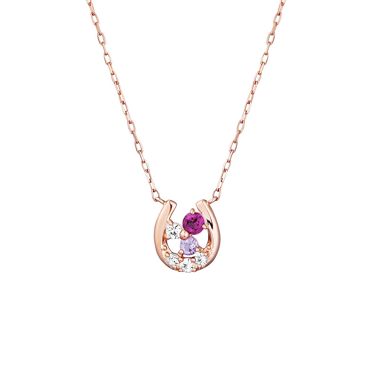 いつの時代も愛されているハートや馬蹄のラッキーモチーフに1月の誕生石でもあるガーネットの暖かな色合いが煌めくネックレス。バラの花びらのような深い赤が魅力的なロードライトガーネットに、アメシストやトパーズの輝きを添えた、明るい一年を予感させるデザインです。