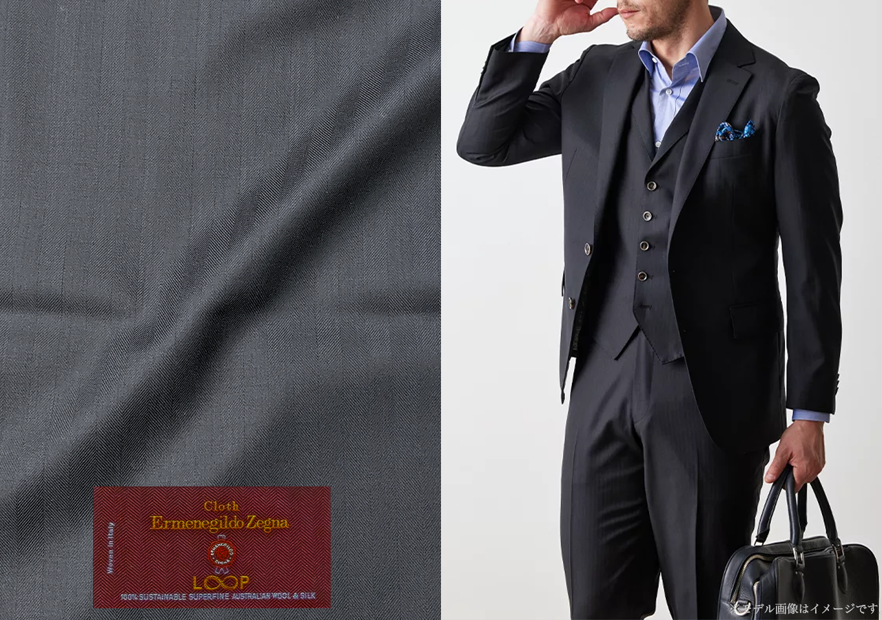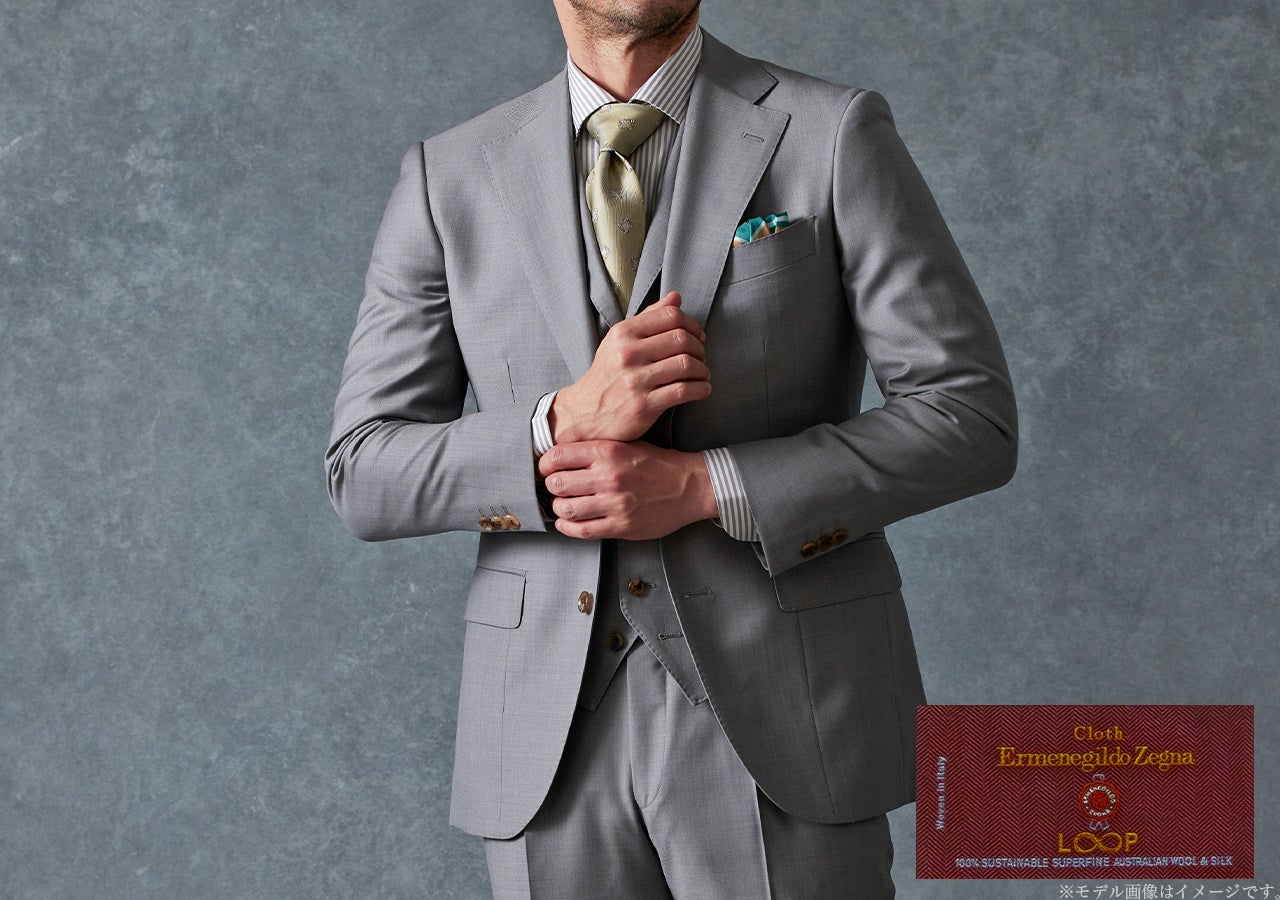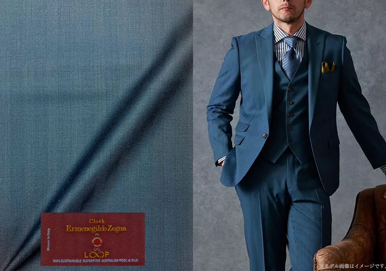 グローバルスタイルでは、スーツの主な材料である生地(服地)について、サステナビリティを推奨するブランドを積極的に取り扱っております。その一つとして、グローバルスタイルの取り扱い生地の中でも人気を誇る、【Cloth Ermenegildo Zegna – クロス エルメネジルド ゼニア】との共同企画によるコレクション「LOOP-ループ」を開発。このコレクションは、サステナブルな原料にこだわっています。