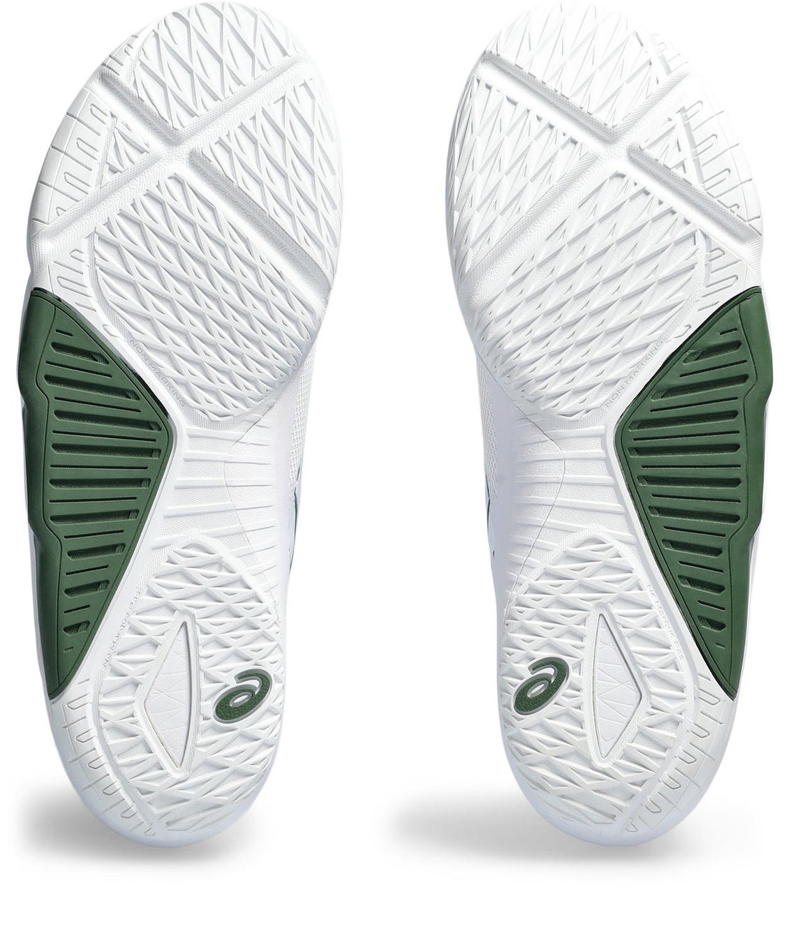 靴底は、接地面積が広いフラットな形状に設計し、さまざまな動きに対して足裏全体で接地する感覚が得られるようにしています。前部には、X形状の大きな屈曲溝を設け、足の動きに対しシューズがしっかり追随するようにしています。また、前モデルよりつま先部分の反り上がりを緩やかにすることで、接地感をより高めています。