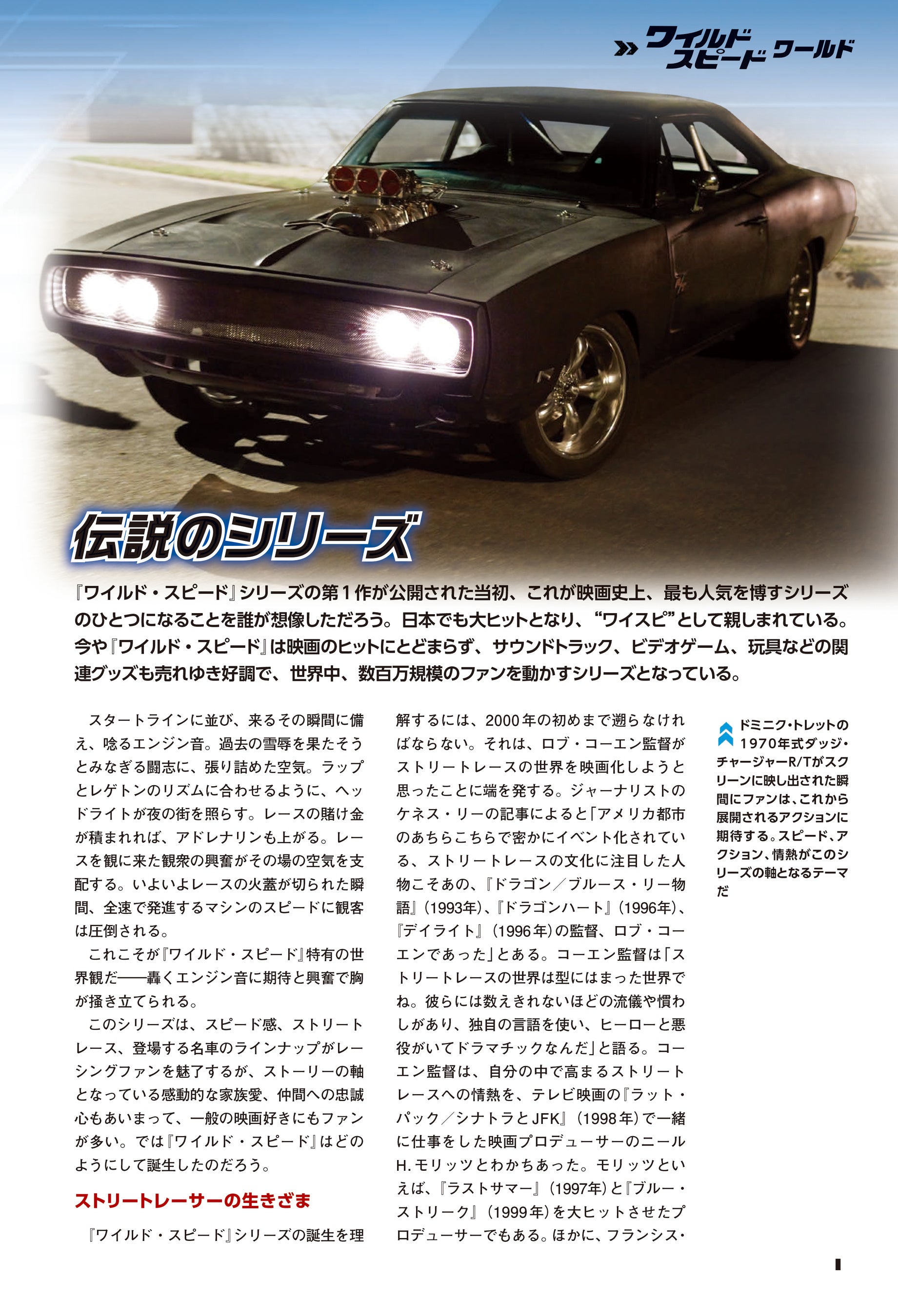 「ワイルド・スピード」シリーズと登場車両の全貌が明かされる充実のマガジンが全3章で構成。映画に登場するキャスト、製作秘話、世界中を魅了した登場車両などを詳しく紹介します。