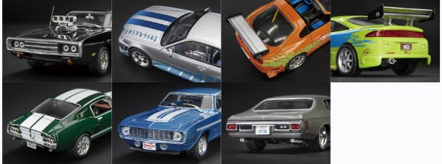 第1作でドミニク・トレットとともに初登場した映画シリーズのシンボルとも言える「ダッジ・チャージャーR/T」や、第2作でブライアン・オコナーがレース参戦に選んだ「日産・スカイライン GT-R(R34)」など、各作品の名場面の記憶を呼び覚ます象徴的な名車たちがダイキャストボディで集結します。