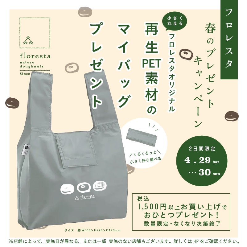 フロレスタ春のプレゼントキャンペーン開催「フロレスタオリジナル 再生PET素材のマイバッグ」お店で1,500円以上お買い上げでプレゼント!ECでも開催♪
