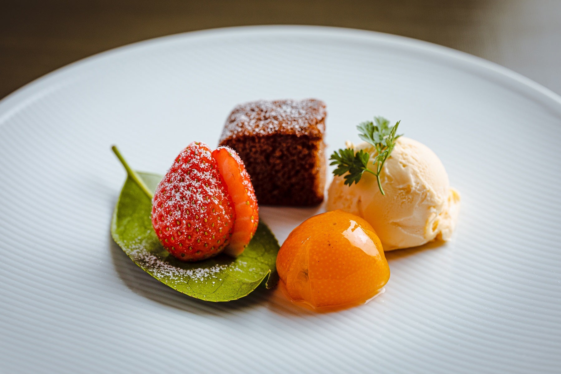 豆乳と塩麹のアイス 赤味噌󠄀ブラウニー 金柑密煮 季節のフルーツ