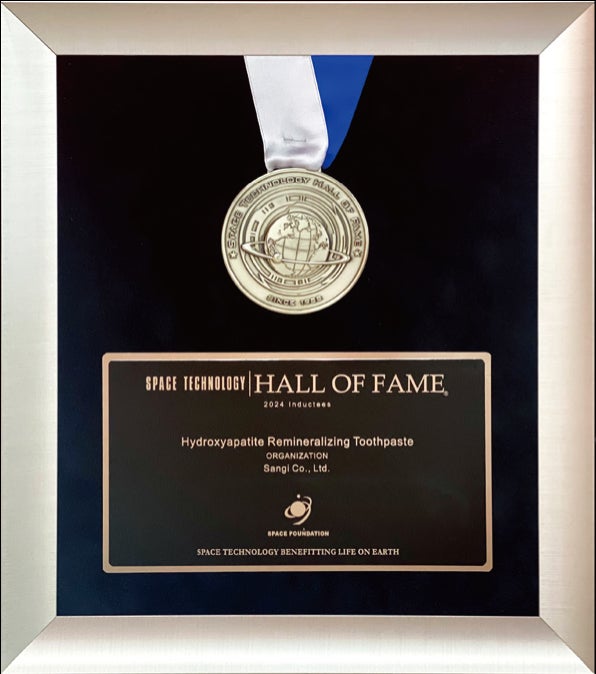 今年で創業50周年を迎えたサンギ。1980年代にNASA(アメリカ航空宇宙局)の技術をヒントに世界初となったむし歯予防成分「薬用ハイドロキシアパタイト」 配合の歯みがき剤の開発に取り組んで成功させたことが、2024年の宇宙技術に関する優れた開発を表彰するアワード「Space Technology Hall of Fame® (宇宙技術の殿堂)」にて、日本企業としては初めて“殿堂入り”を果たしました。
